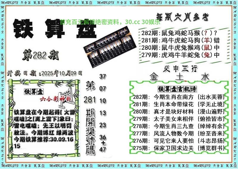 282期 | 1.2.3 | 0.1.4.5.6 | 开:牛41中 |